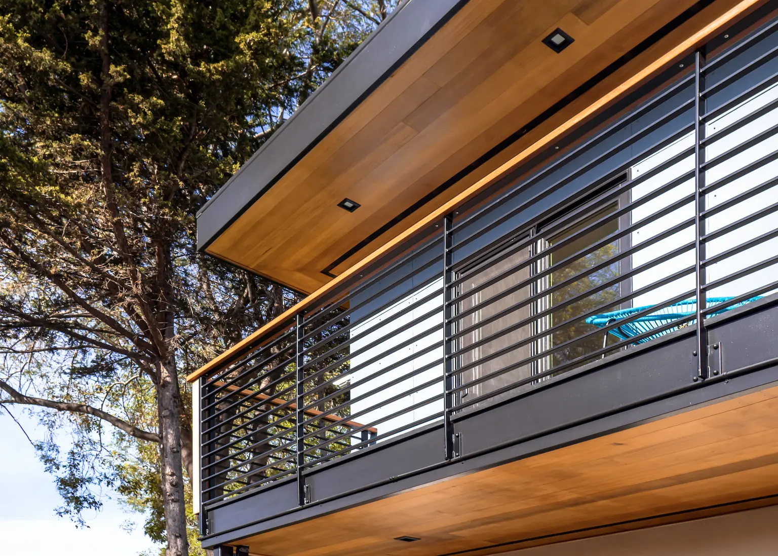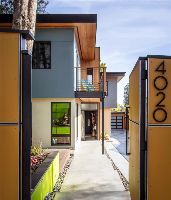 The goal was a warm, modern residence that preserved three mature redwoods at the front of the property, maximized southern light, and maintained generous open space for play and gathering.