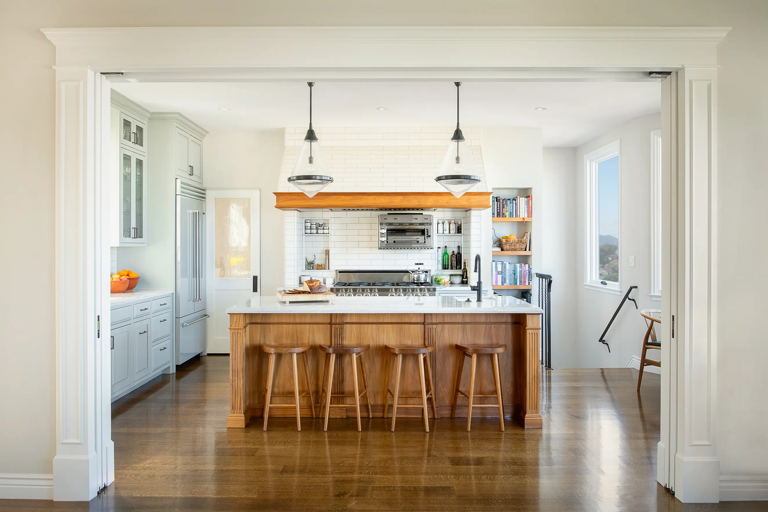 The design balances timeless classical details with a restrained material palette that allows the spectacular views to remain the focal point.