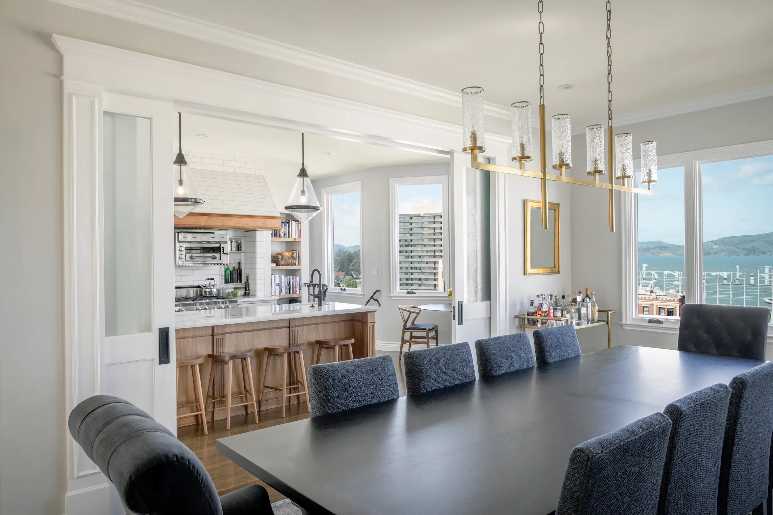 This comprehensive Russian Hill renovation transforms a traditional home into a light-filled sanctuary celebrating commanding bay views. The reimagined interior maximizes dramatic vistas while converting first-floor storage into an entertainment suite flowing to a redesigned courtyard—creating an unexpected urban oasis with timeless elegance.